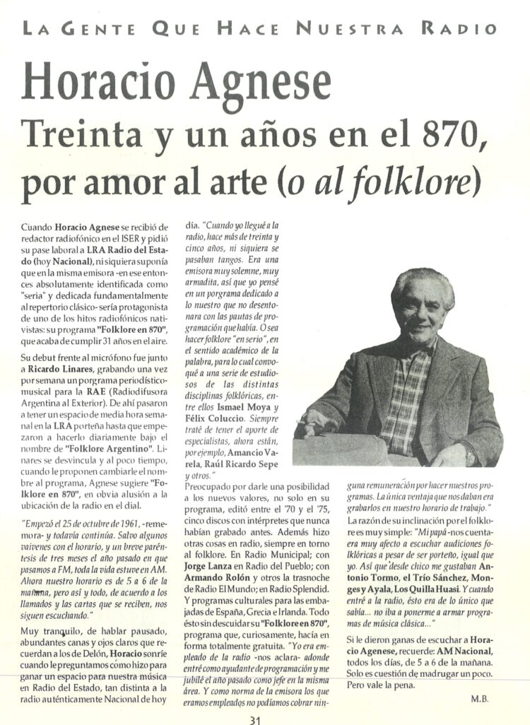 En el Nº 271 (Julio de 1977) se anunciaba los temas que trataban sus colaboradores diariamente en “Folklore 870”.