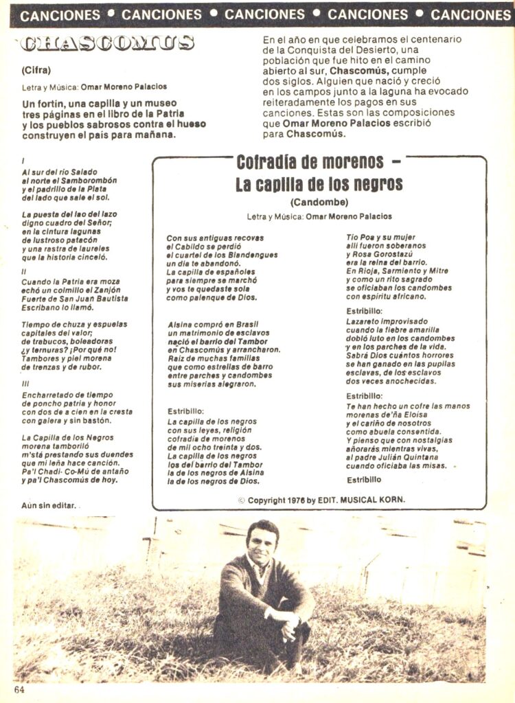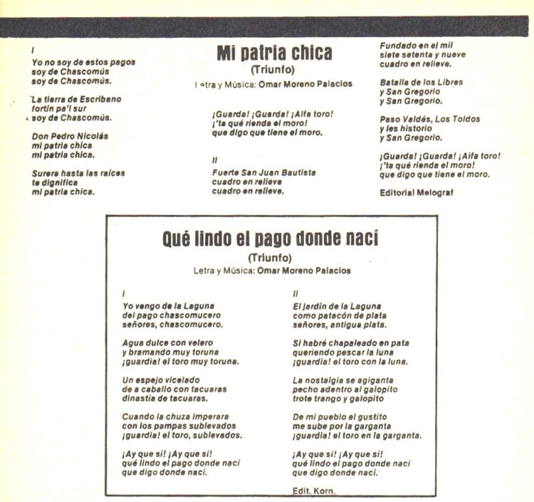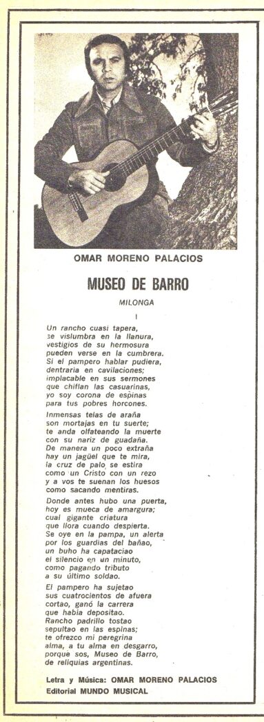 Omar Moreno Palacios nació en setiembre de 1938 y falleció en febrero de 2021, Dejo registrados en SADAIC más de 80 temas.