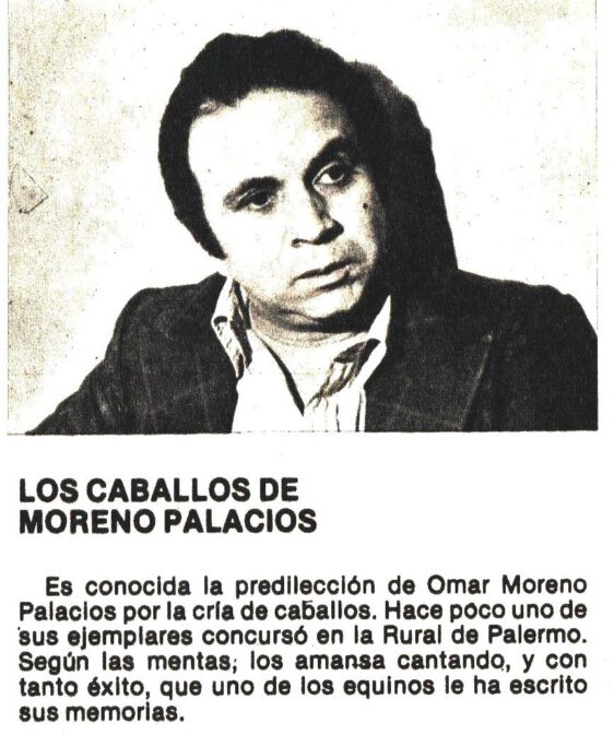 Que Omar Moreno Palacios era además criador de caballos fue publicado en el Nº 297 (Setiembre de 1977)