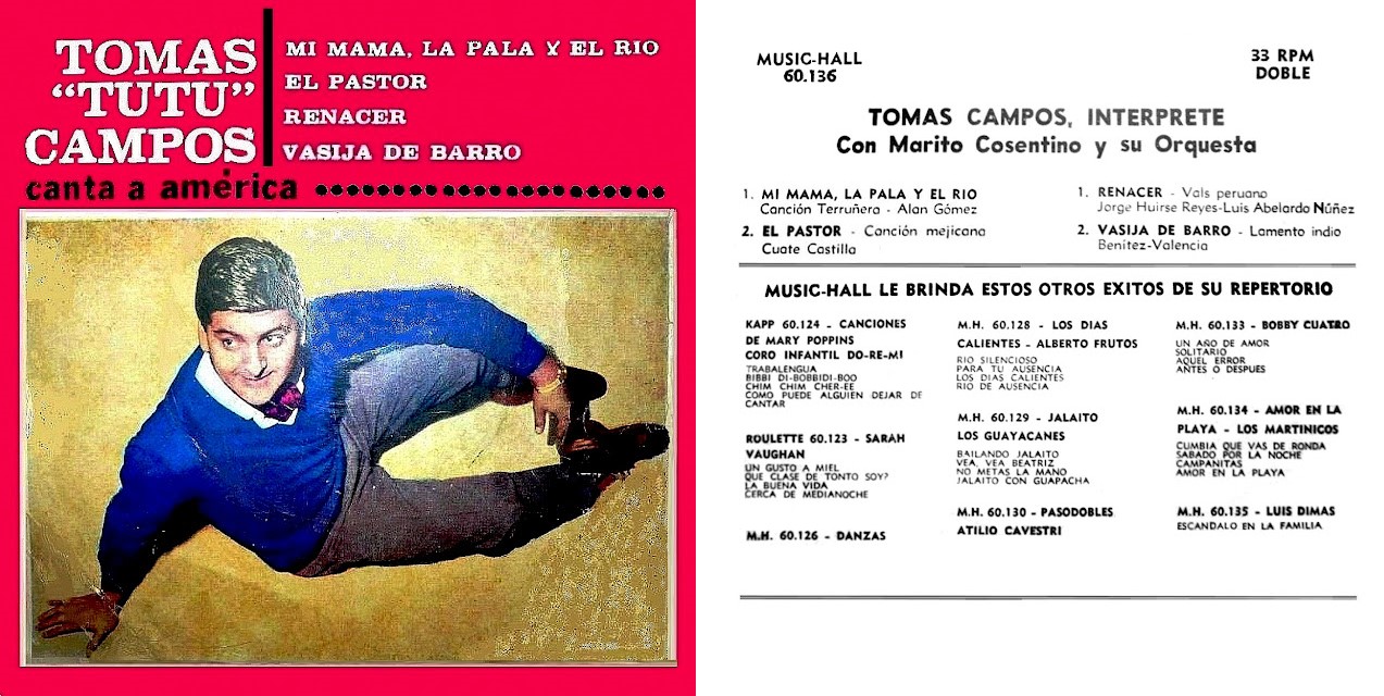 Y en 1960 de la mano también de Waldo de los Rios graba su primer Lp como solista ” Canta… Tomás Campos”  Columbia 8249.