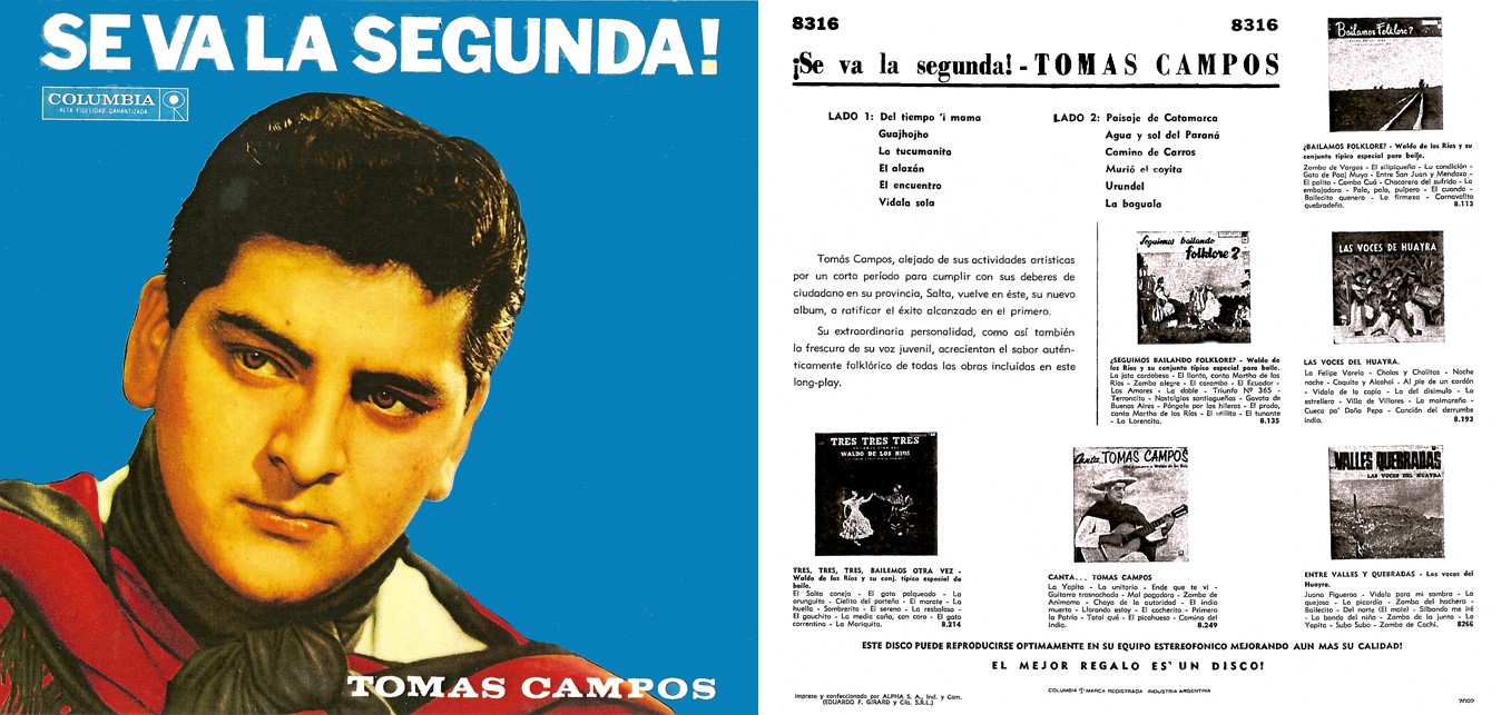 En aquel año 1965 se edita su LP Columbia 8316 “Tomás Campos ….se va la segunda”