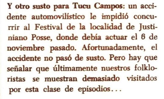 Y en Revista Folklore Argentino Nº 8 (Agosto de 1966) se anunciaba que Tutú Campos que había grabado la canción mejicana “El Pastor” y acompañado en actuaciones a Cuco Sánchez , emprendía una gira por Centroamérica.