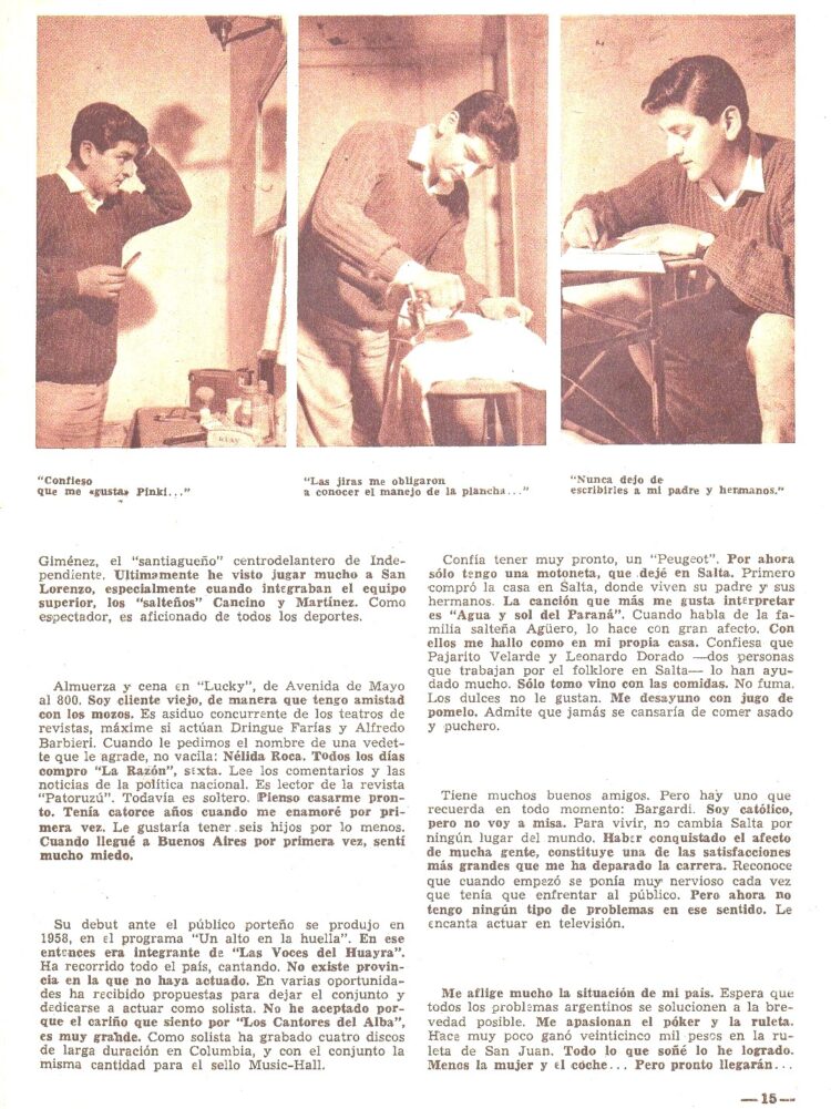 En la Revista Folklore Nº 8 (15/12/61) se publica una primera reseña del cantor cuando también integraba el Conjunto “Los Cantores del Alba”