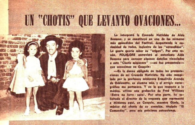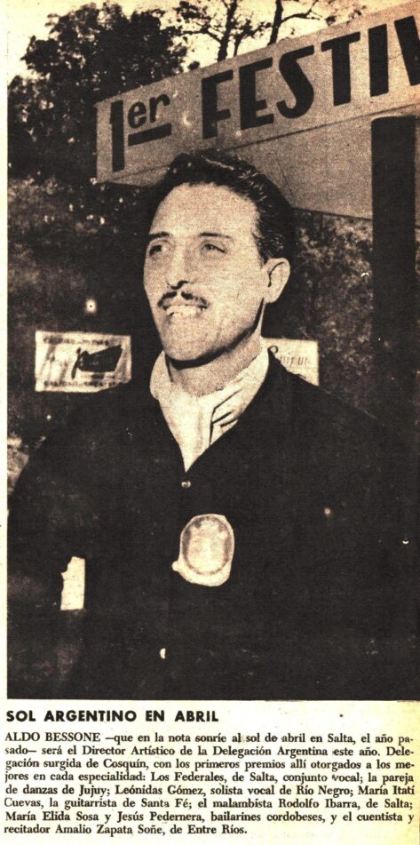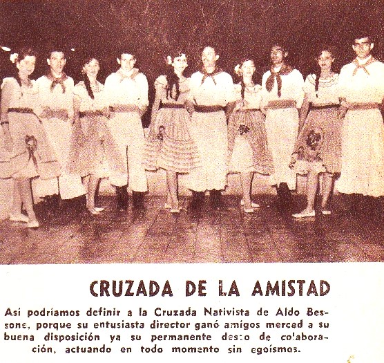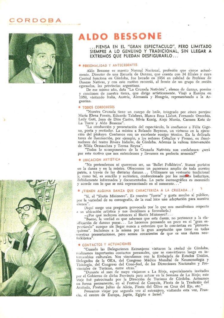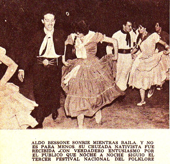 En Folklore Nº 84 (29/12/ 1964) se publica una entrevista a Aldo Bessone donde comenta las actividades de su grupo tradicionalista de danzas nativas.