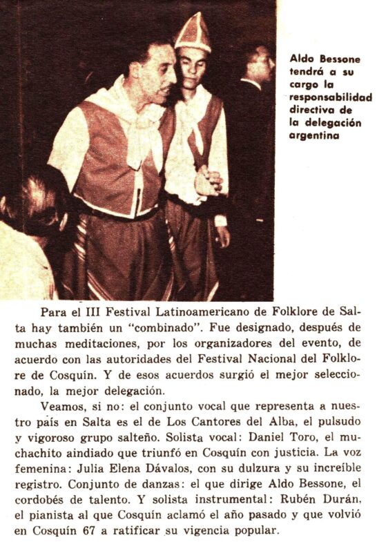 Aquí está también Aldo Bessone al frente de la Delegación cordobesa en el Festival de Cosquín de 1968. En el Nº 157 (30/1/1968)