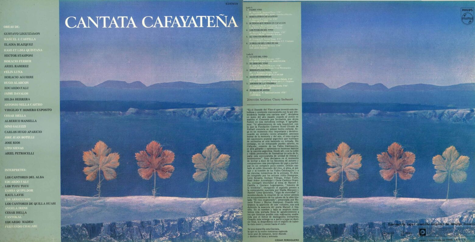 Carátulas del disco Philips 5339. En el anverso unas palabras de César Perdiguero que fue quien creó en las primeras ediciones un grito inaugural: ¡Alégrate Cafayate!