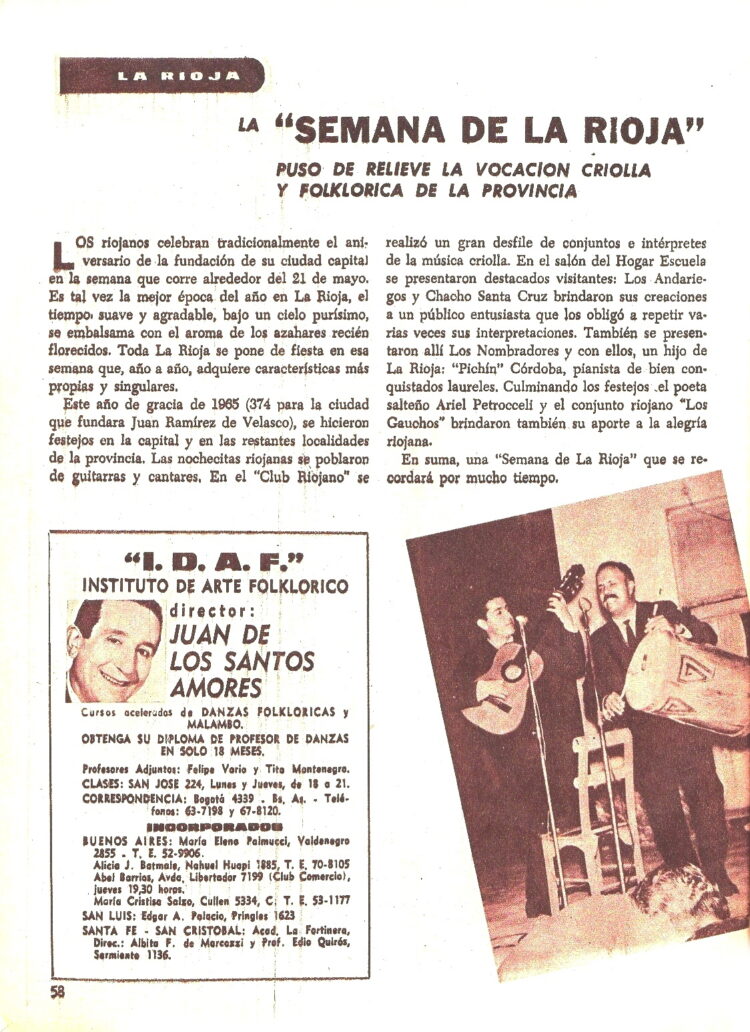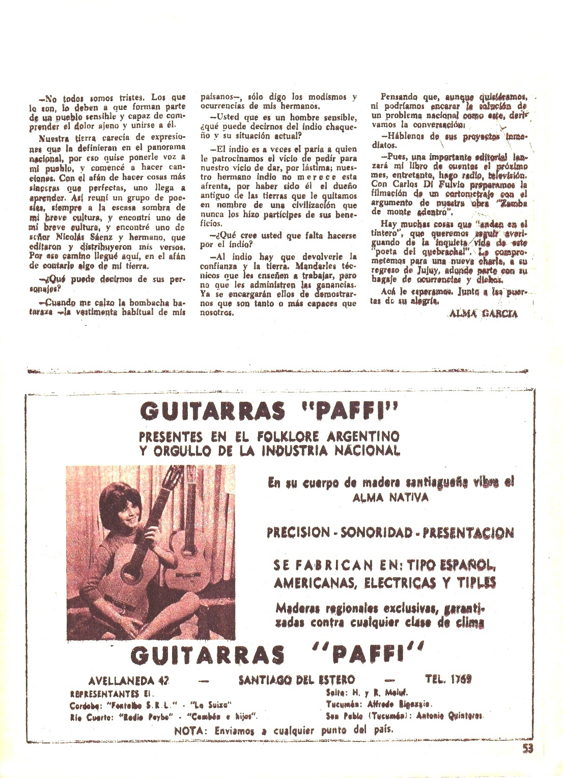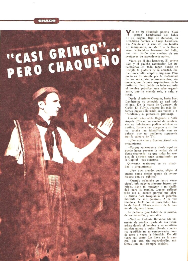 Esta sección en el Nº 98 (13/7/1965) de la Revista comienza informando de la personalidad de Luis Landriscina oriundo de la Provincia del Chaco . Firma la nota Alma García.