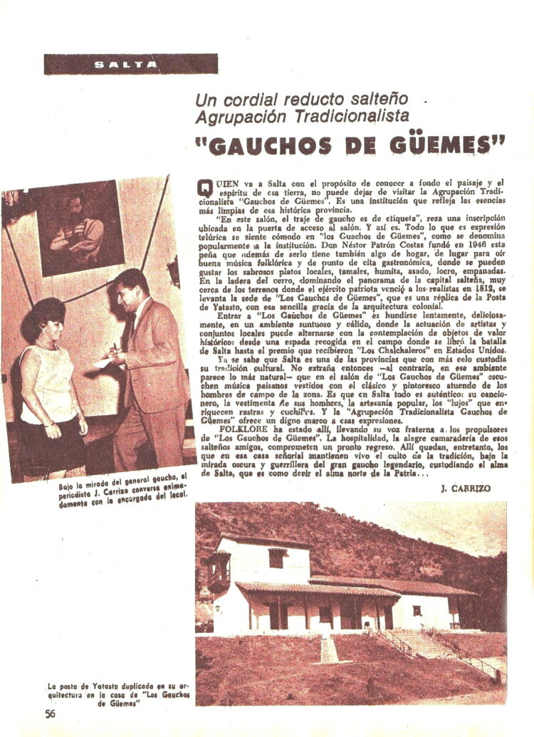 Desde Salta nos habla J. Carrizo de la ” Agrupación Tradicionalista Gauchos de Güemes”.