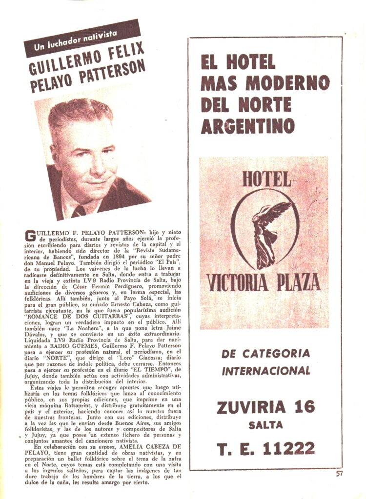 De Salta era también Guillermo F. Pelayo Patterson a quien dedicamos espacio en la nota dedicada a Ernesto Cabeza por haber sido su suegro y marido de Amelia Cabeza hermana del gran guitarrista y compositor.