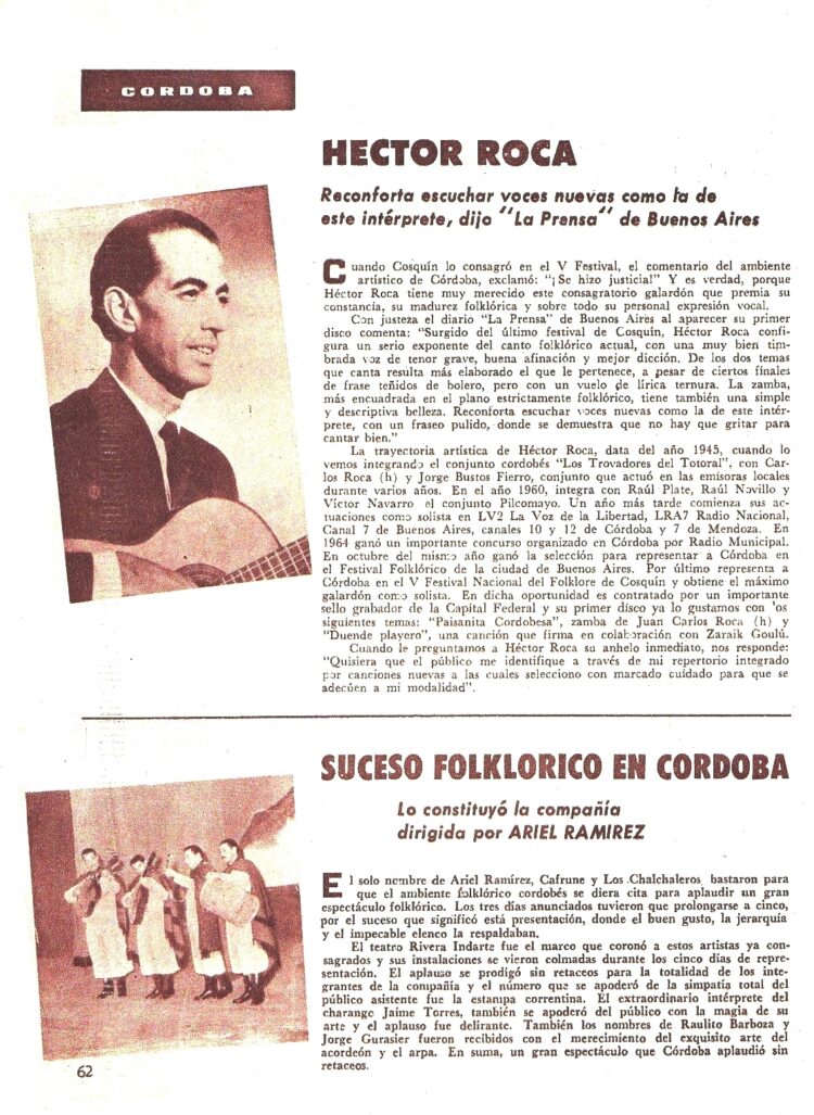 De Córdoba era Héctor Roca, interprete que había transitado por varios Conjuntos pero que ahora triunfaba como solista.