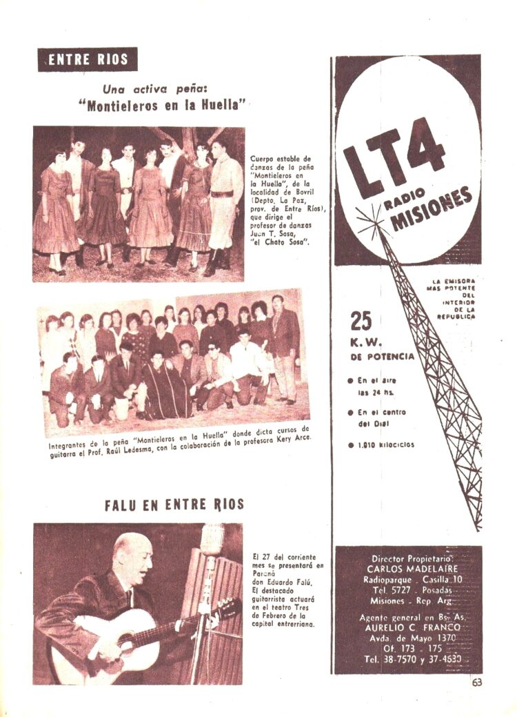 Des Entre Ríos nos informan de la Peña “Montieleros en la huella” de la localidad de Bovril y de la presentación en Paraná de Eduardo Falú.