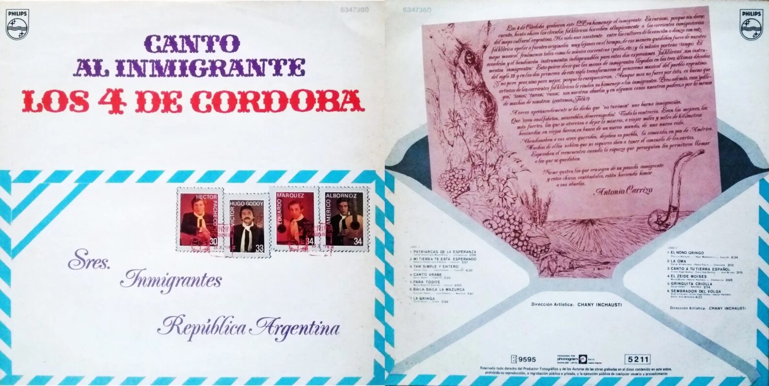 También en 1978 presentan su disco “Canto al inmigrante” Phonogram 5211, como homenaje a todos aquellas personas de diferentes países que habían venido a habitar estas tierras argentinas.