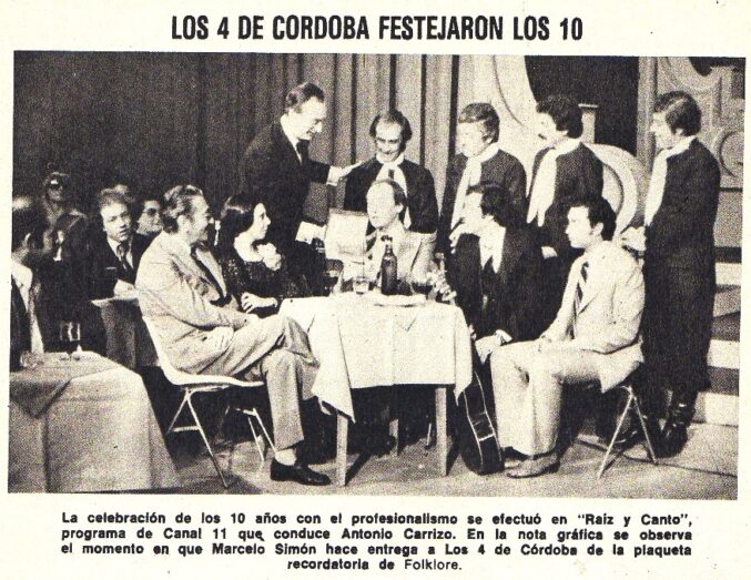 También fueron homenajeados por estos diez años de trayectoria en el programa “Raíz y canto” de Canal 11. En el Nº 281 (Mayo de 1978)