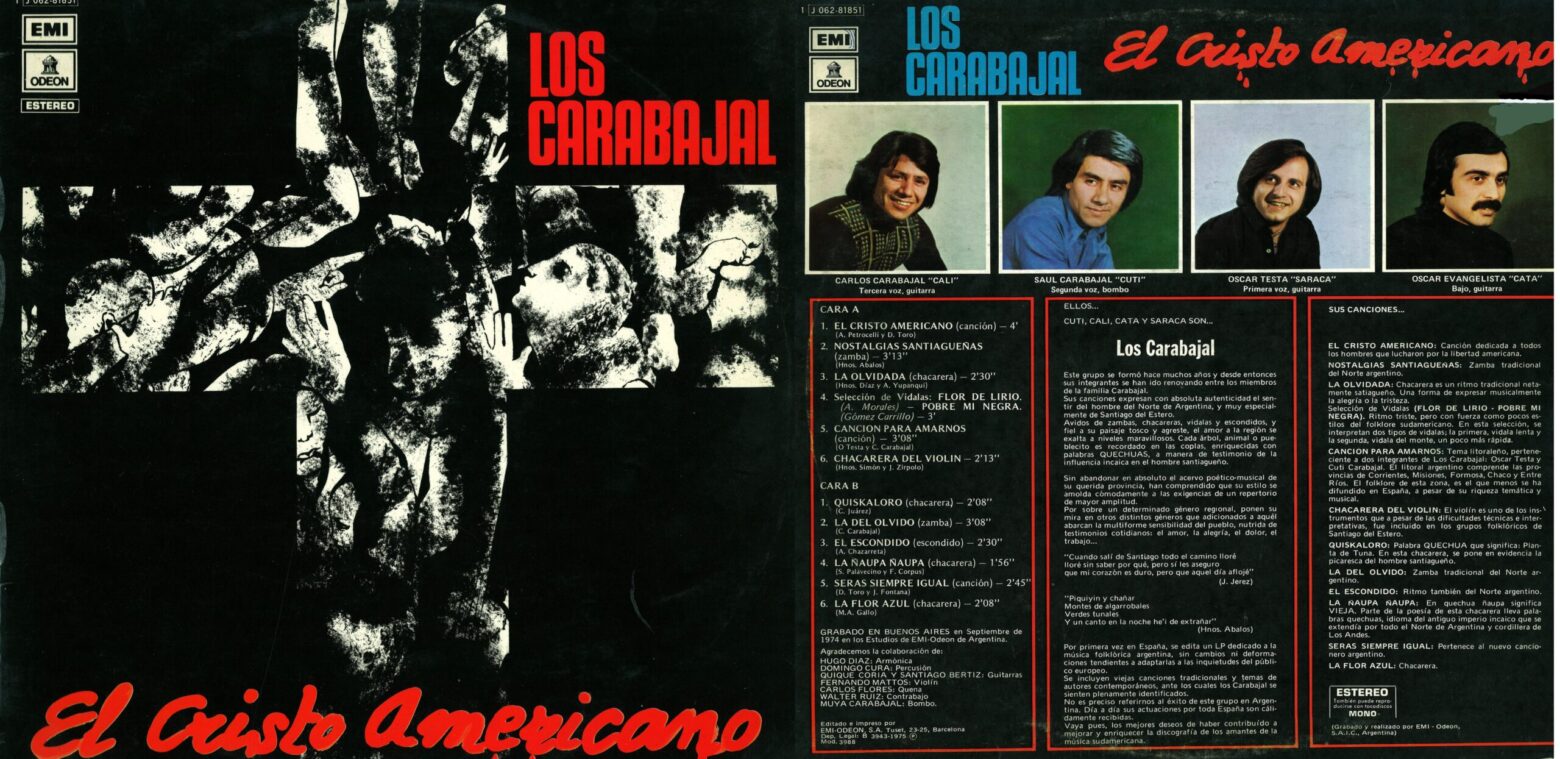 Ese mismo año también se edita en España ese mismo  LP pero  con el nombre de “El Cristo americano”  tema de Ariel Petrocelli y Daniel Toro, que aunque en la contratapa dice que “está dedicado a todos los hombres que lucharon por la libertad americana”, parece estar claramente  está referido a la muerte del Che Guevara en Bolivia.