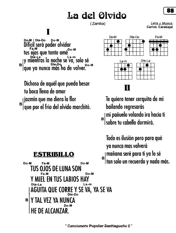 La zamba “La del olvido” de Carlos Carabajal se puede escuchar por gentileza de MarcelinoMM. Se dejan los acordes .