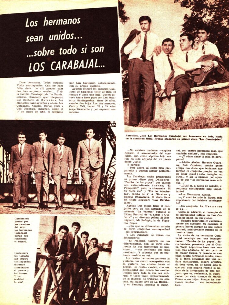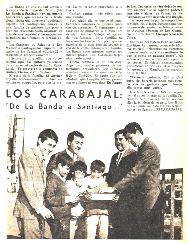 Otro reportaje fue publicado en el Nº 173 (Mayo 1969). Anunciaban la grabación de un LP donde incluían la exitosa “Pampa de Los Guanacos “ y un tema de Carlos “El Cacique Venancio Caro”.