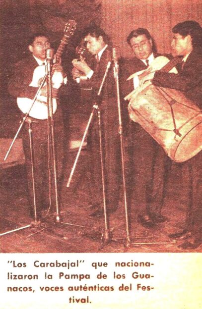 Graban un disco con 4 temas y fueron programados en el Festival de Cosquín de 1969 como “Los Carabajales “  para la jornada inaugural del sábado 18 y del 24 de enero . Finalmente se imponen como “Los Carabajal” cantando “En Pampa de los Guanacos” En Revistas Nºs 169 ( 15/17/69) y  170 (28/1/69)