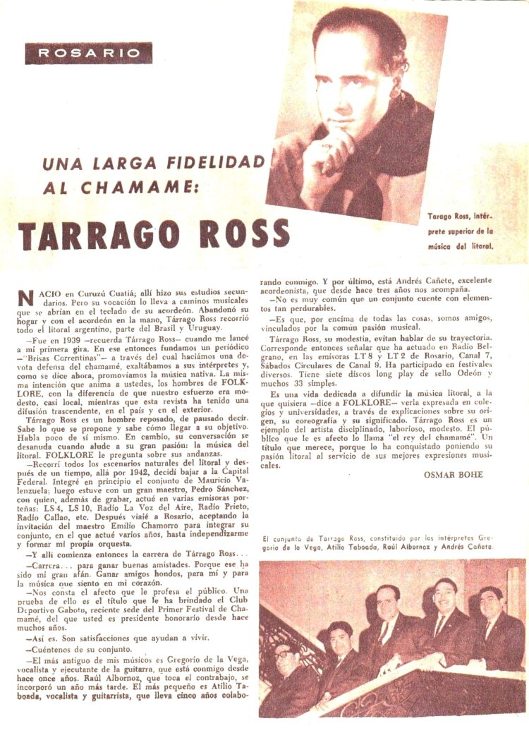 El corresponsal en Rosario nos habla de Tarragó Ross. La nota del día 5/6/2021) estuvo íntegramente dedicado al creador correntino.https://revistafolklore.com.ar/tarrago-ros/