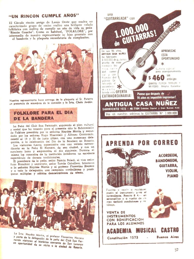 En esta página se habla del “Círculo Rincón de Lanús Oeste” y que la Peña del Club San Fernando preparaba festejos con motivo del Día de la Bandera.