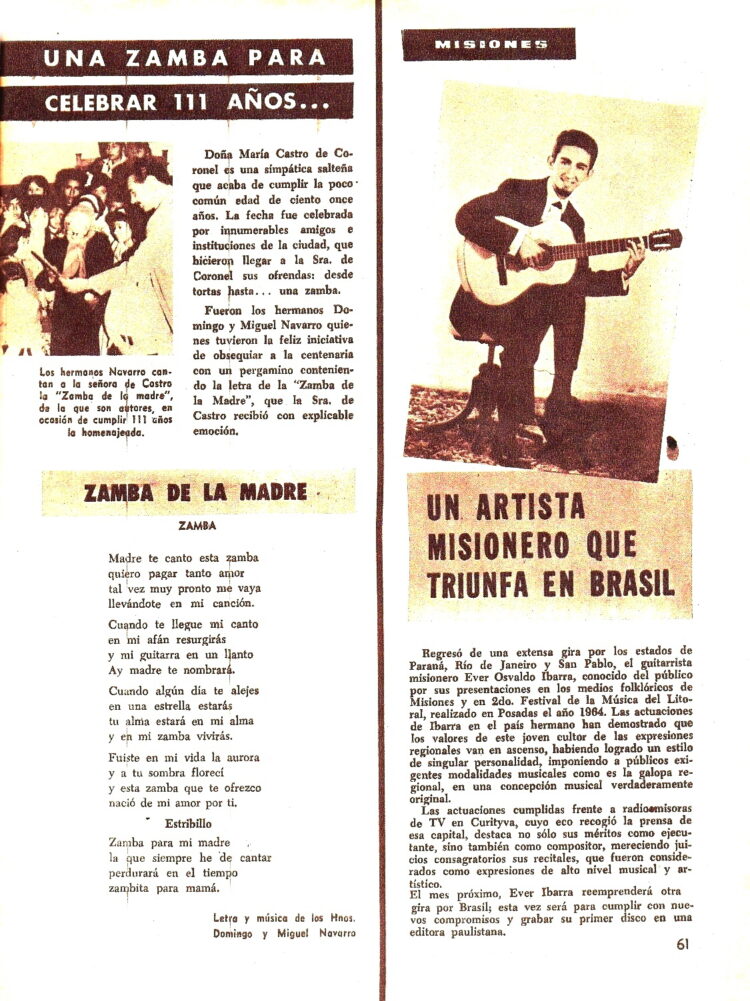 Una nota firmada por Alma García nos informa de Daniel Ruiz, una cartero tucumano trabajando en Salta que como compositor había creado la zamba “El carterito”.