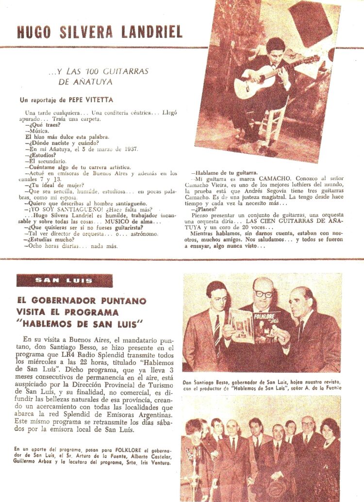El corresponsal en Santiago entrevista al guitarrista de Añatuya que iba a presentar un espectáculo con un Conjunto de 100 guitarras y Coro.
