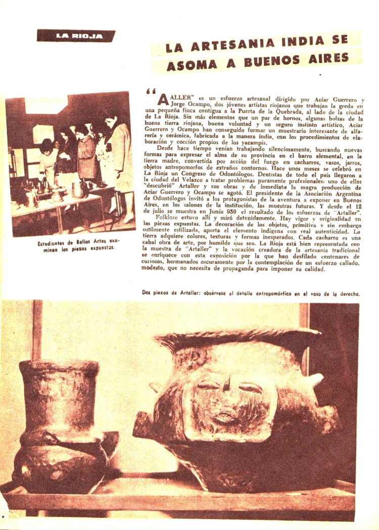 “Artaller” era un esfuerzo artesanal en La Rioja de Aciar Guerrero y Jorge Ocampo . Habían presentado sus obras en la Asociación de Odontólogos de Buenos Aires.