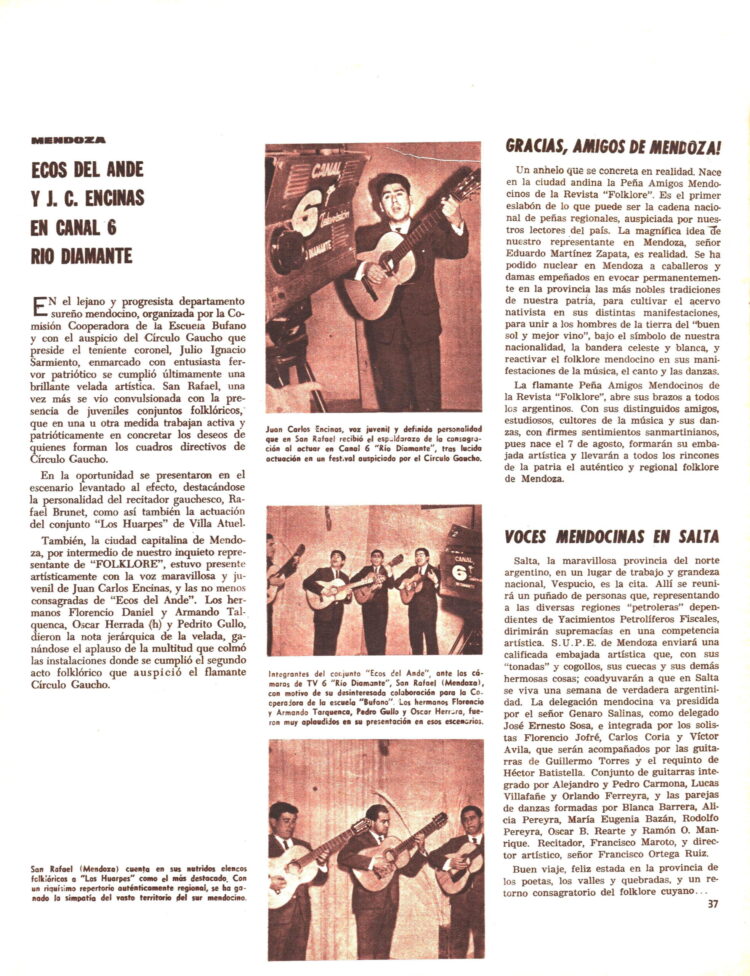 En Mendoza capital había nacido la “Peña Amigos mendocinos de la Revista Folklore”.