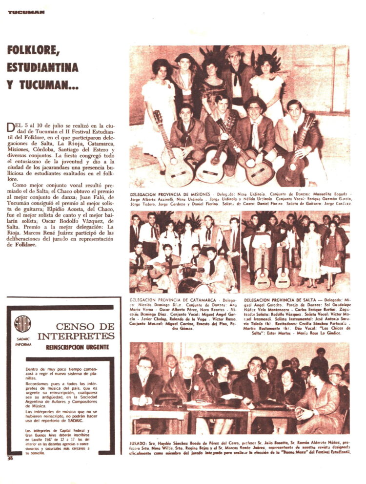 En Tucumán había concluido el “II Festival Estudiantil del Folklore” con la intervención de delegaciones de provincias del norte argentino. La provincia anfitriona había conseguido el premio al mejor solista de guitarra en la persona de Juan Falú.