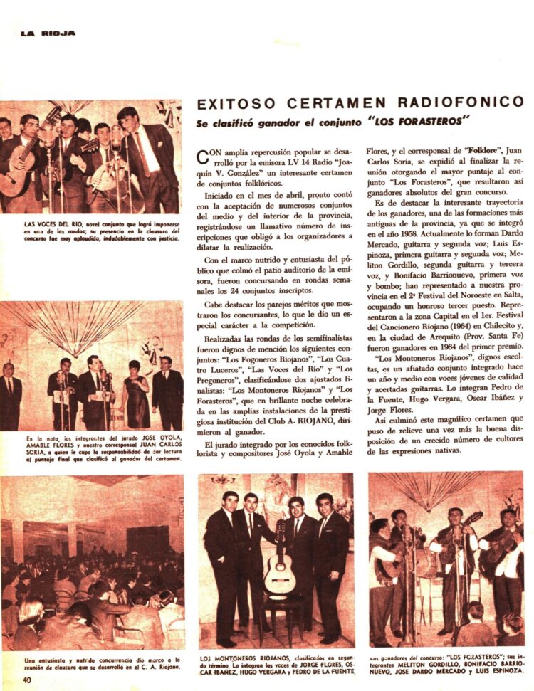En La Rioja por la emisora LV14 Radio Joaquín González se había realizado un certamen de Conjuntos Folklóricos resultando ganador “Los Forasteros” creado en el año 1958.