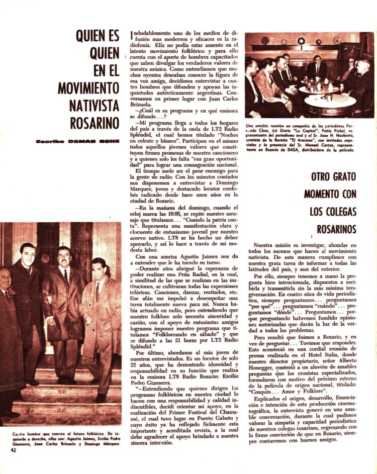 Desde Rosario, el corresponsal de la Revista entrevista a cuatro de los comunicadores con programas folklóricos en las radios de la provincia.