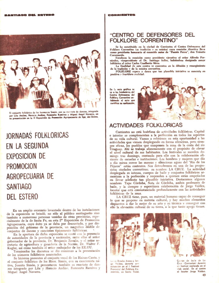 Y desde Corrientes llegaban las noticias de la constitución del “Centro Defensores de Folklore correntino” y de la actividades en una localidad de la Costa del río Uruguay : “La Cruz”.