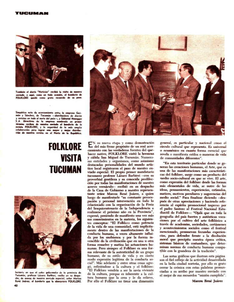 Las autoridades de la Revista Folklore visitaban la ciudad de San Miguel de Tucumán