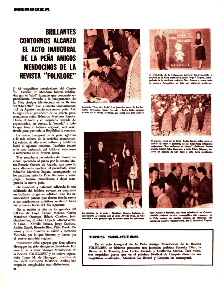 Se inauguraba en Mendoza la Peña Amigos de la Revista Folklore.