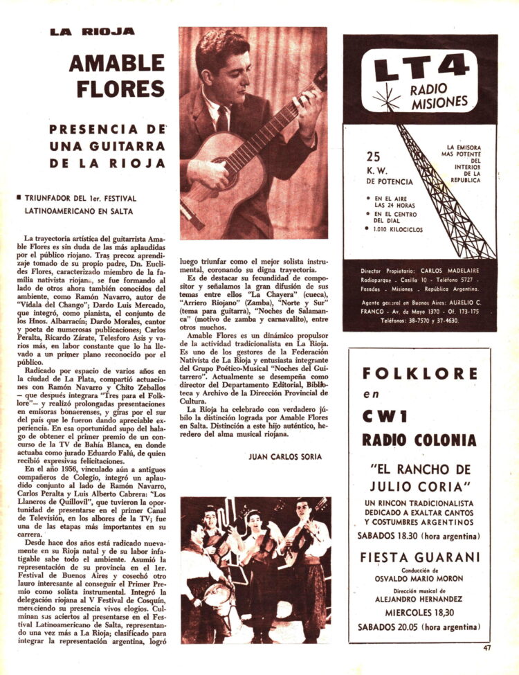 Amable Flores era un artista de La Rioja que había triunfado en el Festival Latinoamericano de Salta y cantado junto a otros grandes intérpretes de la provincia.