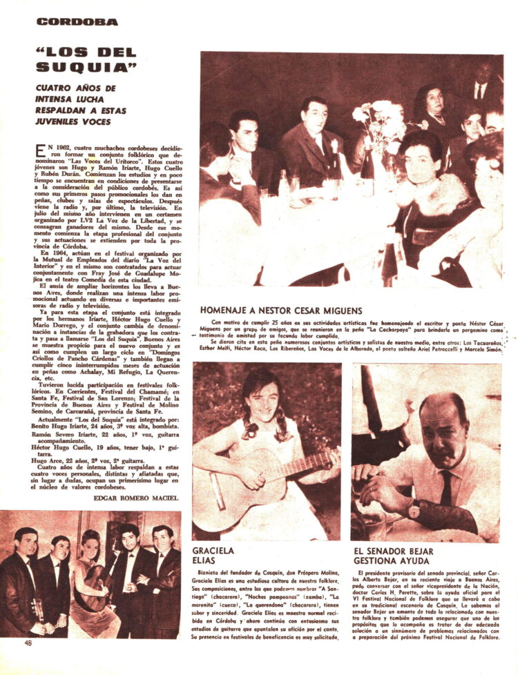 Desde Córdoba enviaban noticias del Conjunto “Los del Suquía”, de la guitarrista Graciela Elías, y de un homenaje al poeta Néstor César Miguens.