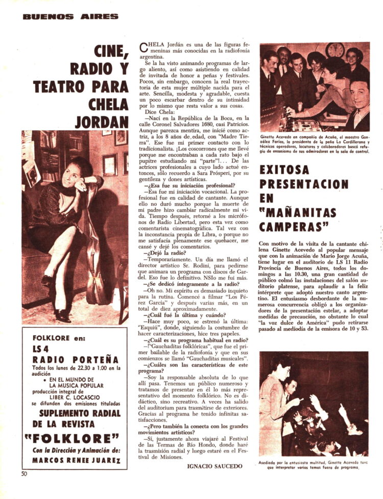 Y en la Provincia de Buenos Aires , se había presentado Ginette Acevedo en el programa “Mañanitas Camperas” en La Plata y la actriz y presentadora Chela Jordán presentaba el Festival de Termas de Rio Hondo y en el Festival de Posadas.