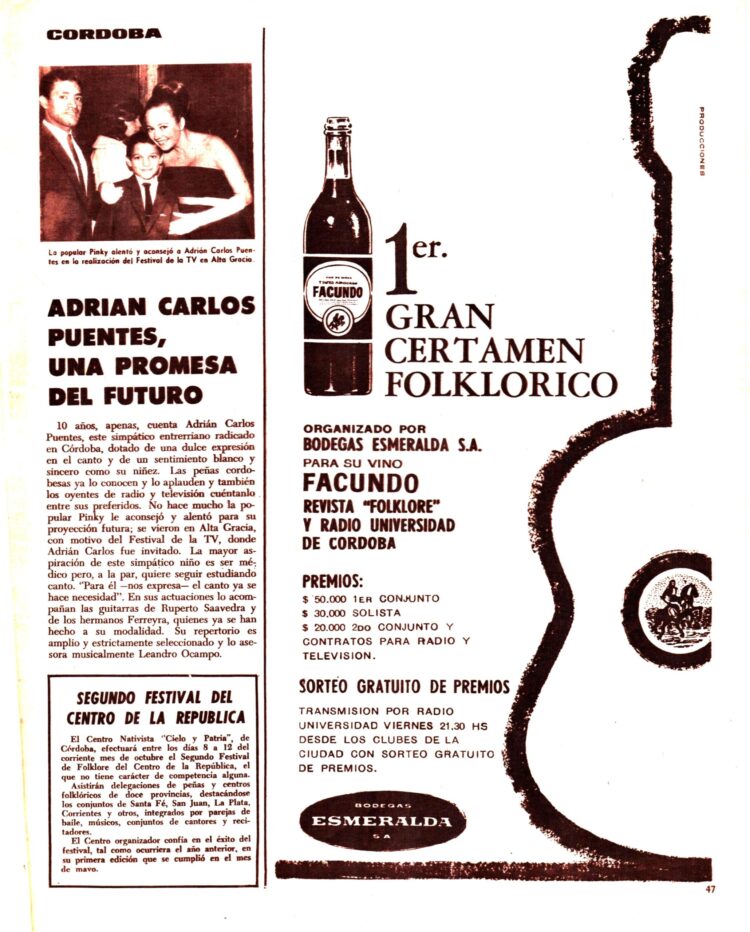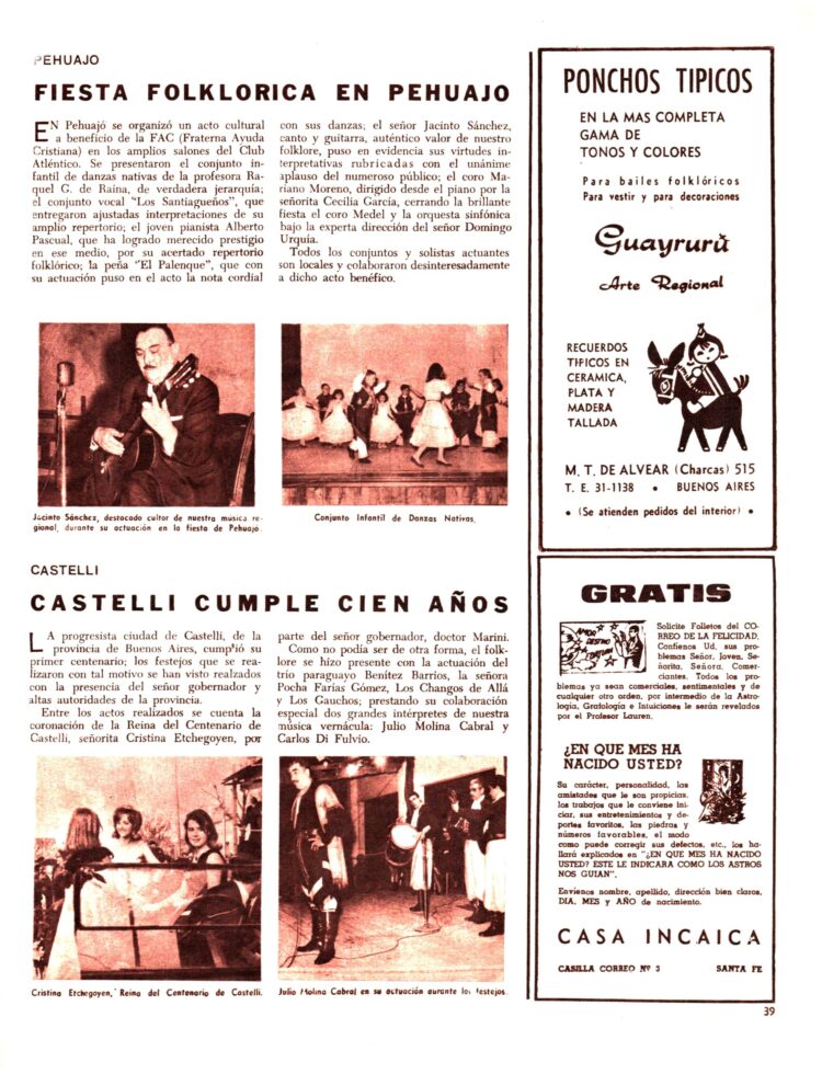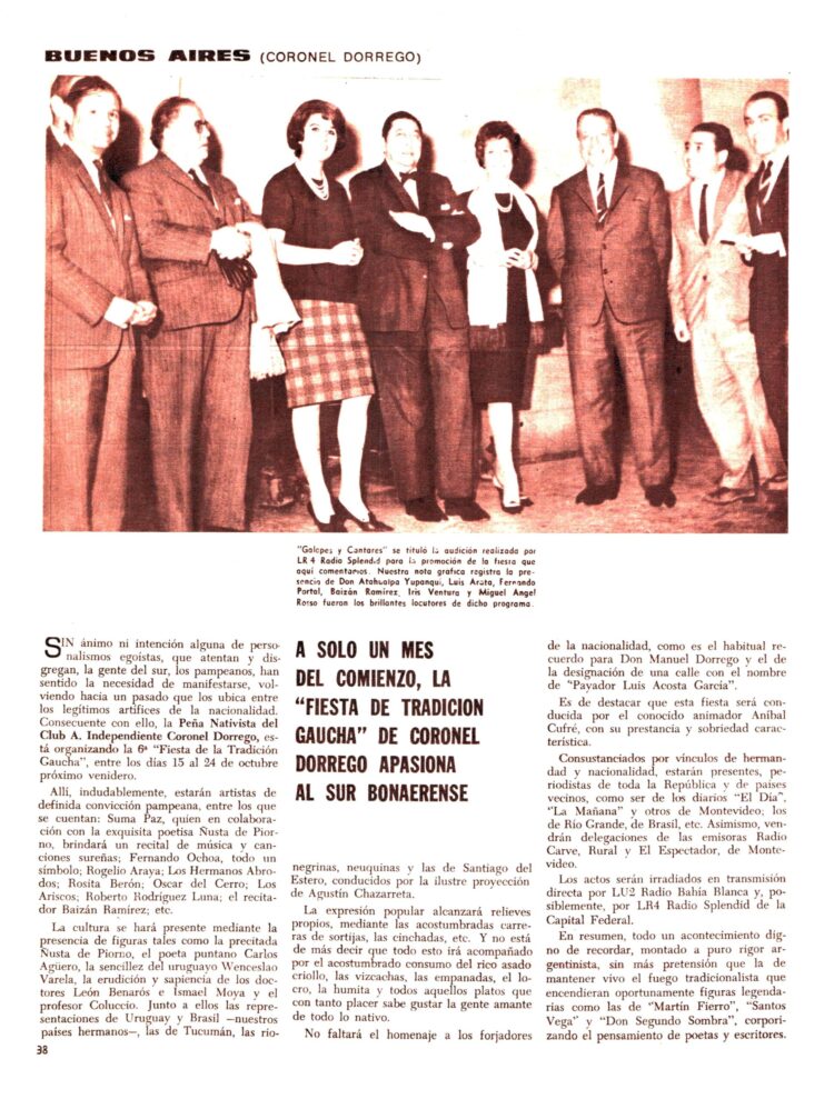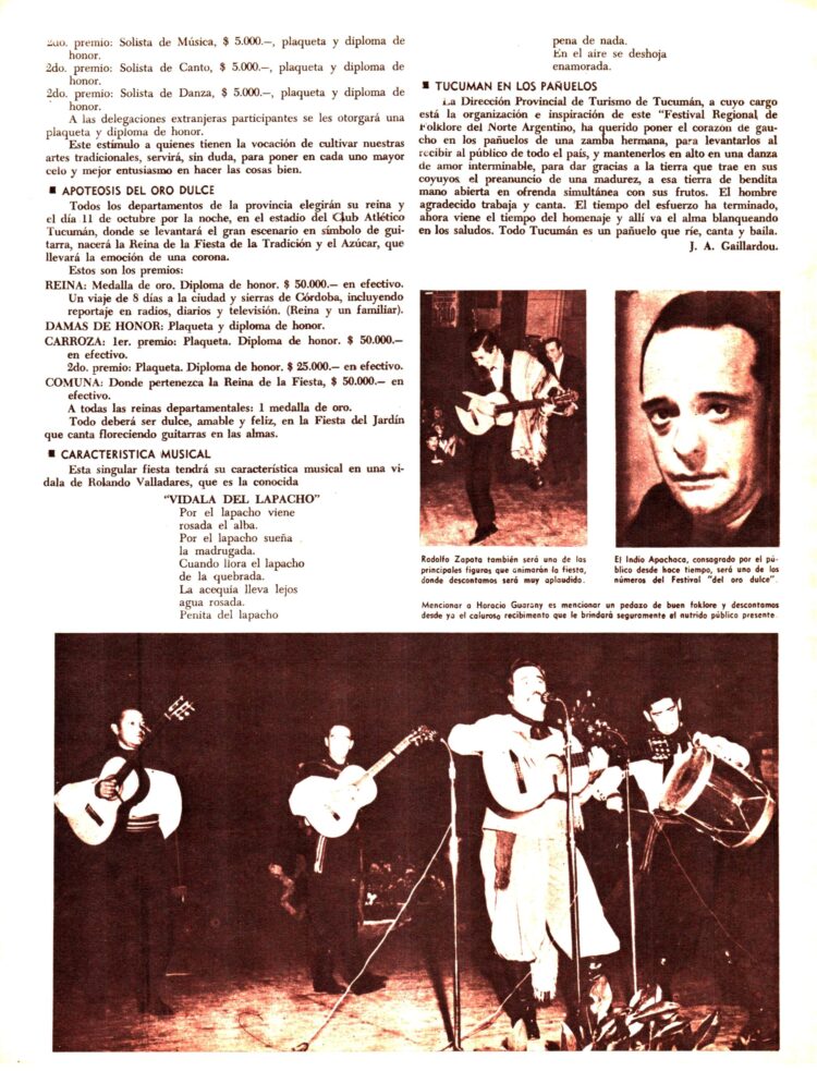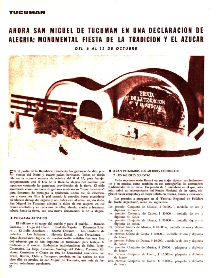 La sección con noticias del Interior del Nº 104 (5/12/1965) comienza informándonos de la organización en San Miguel de Tucumán de la “Fiesta de la Tradición y el azúcar”
