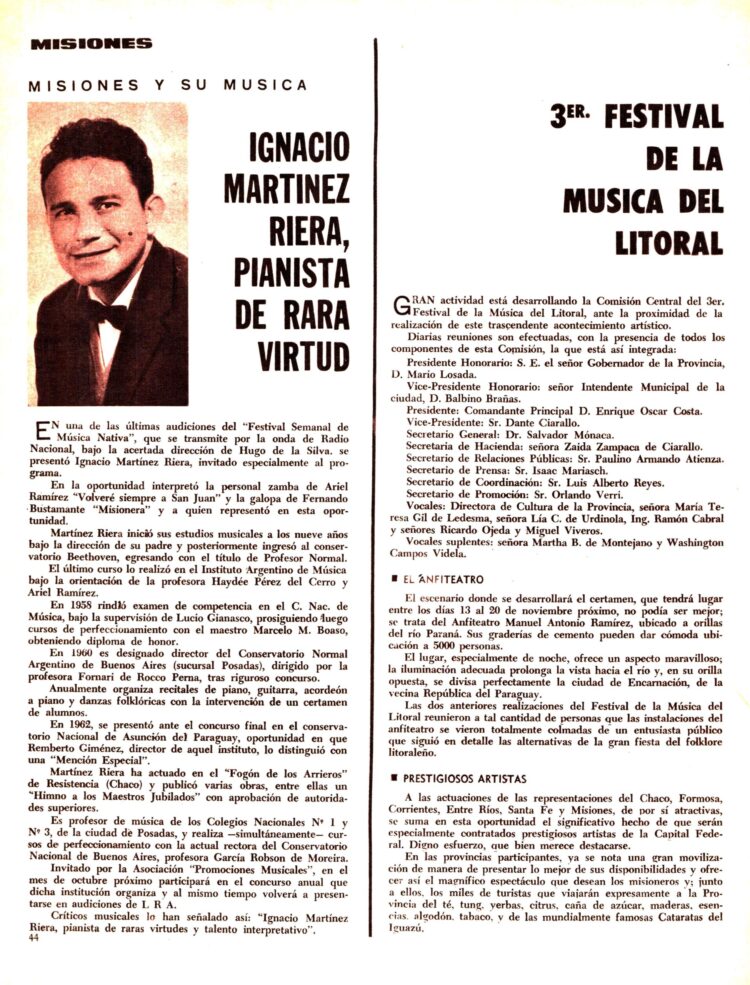Ignacio Martínez Riera era un virtuoso pianista que desarrollaba sus actividades en la Provincia de Misiones.