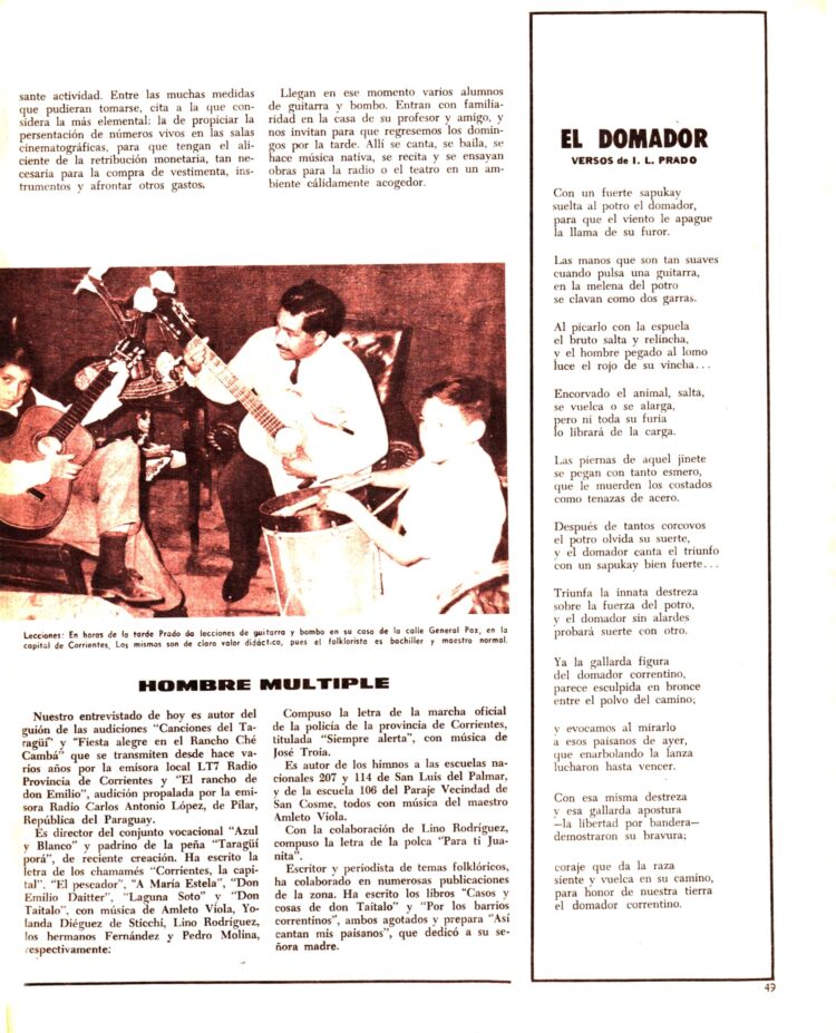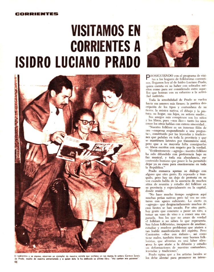 Y para finalizar desde Corrientes enviaban una interesante reseña de Isidro Luciano Pardo, autor y compositor así como escritor de dos libros de, además de guitarrista y animador de varios audiciones folklóricas por LT7 Radio Provincia de Corrientes.